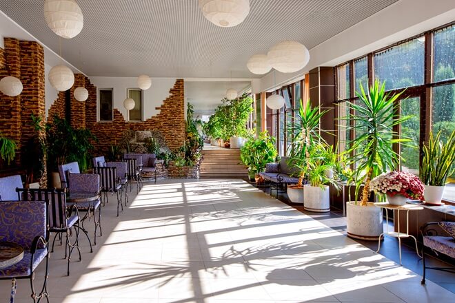 Большим плюсом отеля «Ока Спа Резорт», является расположение инфраструктуры и номеров. Все расположено в одном корпусе, что делает отдых в отеле комфортным в любое время года.
