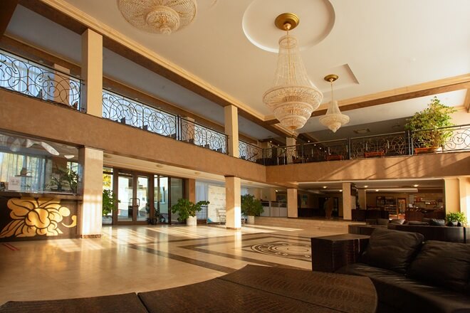 В отеле несколько бассейнов: крытый — расположен в здании главного корпуса, размер: 25*8,5м.; открытый подогреваемый бассейн; детский бассейн: расположен в здании главного корпуса; размер: 10*6 м.; вода не хлорированная; Все бассейны работают круглогодично.