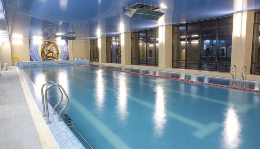 Плавательный бассейн для взрослых размером 25 х 8,5 метров. Глубина бассейна 1,2 — 1,8 метров. Температура воды 26-28 гр. С